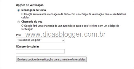 Você pode receber o código de confirmação através de mensagem de texto (SMS, torpedo) ou por chamada de voz. Comigo a primeira opção falhou, mas a segunda chegou rapidinho.