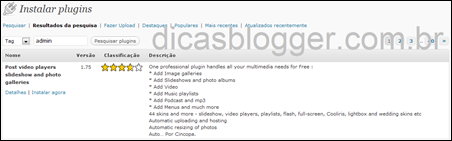 Escolha uma tag, escolha algum plugin referente a esta tag e para instalá-lo basta clicar em “Instalar Agora”, abaixo do nome do plugin, na primeira coluna.