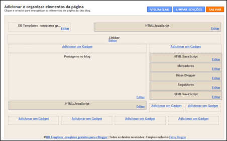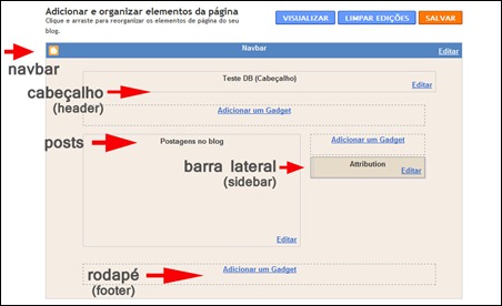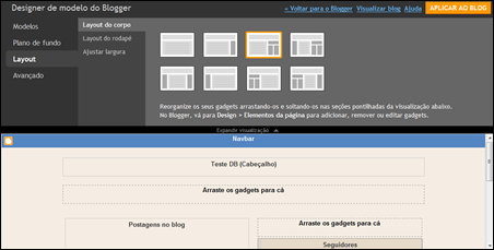 O layout do Blogger é dividido, basicamente, nos seguintes elementos: